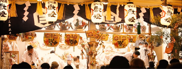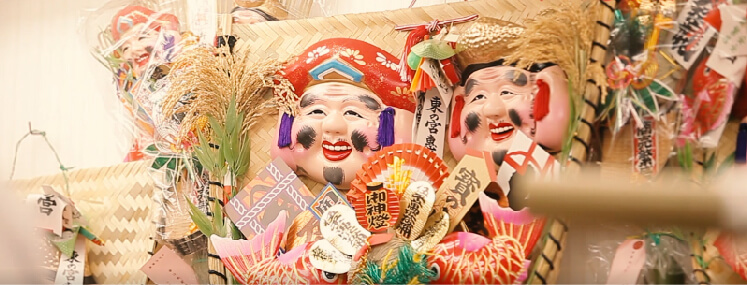 縁起物を神棚や店先に飾ると、その年1年間の商売繁盛がかなうといわれています。また、前年の商売が繁盛した場合、感謝を込めてもう一回り大きな縁起物を買うのが良いとされています。